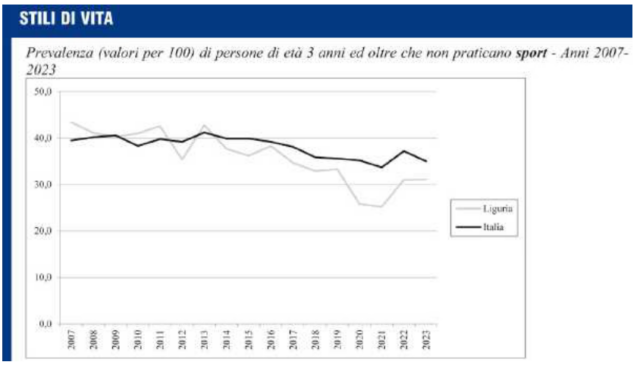 I liguri sono longevi, controllano la propria forma fisica per quanto riguarda il peso e le malattie collegate ma sono davvero poco sportivi rispetto al resto degli italiani.